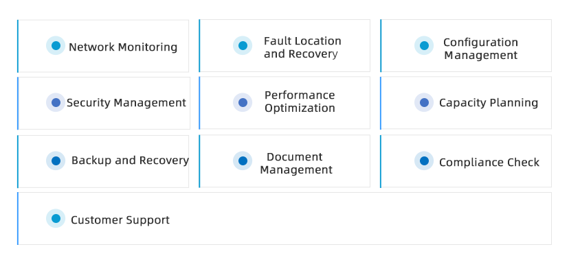 Office system, digital system operation and maintenance, and data center operation and maintenance services, covering network equipment, servers, etc. Ensure the safe and stable operation of the system through monitoring, inspection, disaster recovery planning, and other methods.