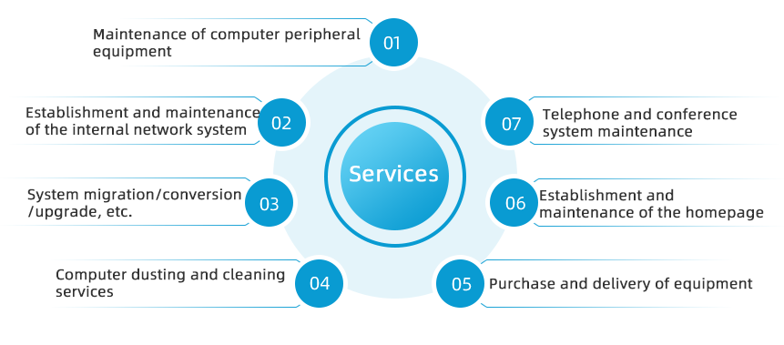 IT operation and maintenance services include desktop management services, system operation and maintenance, network operation and maintenance, database operation and maintenance, emergency services, hardware maintenance and procurement on behalf of seven service modules.