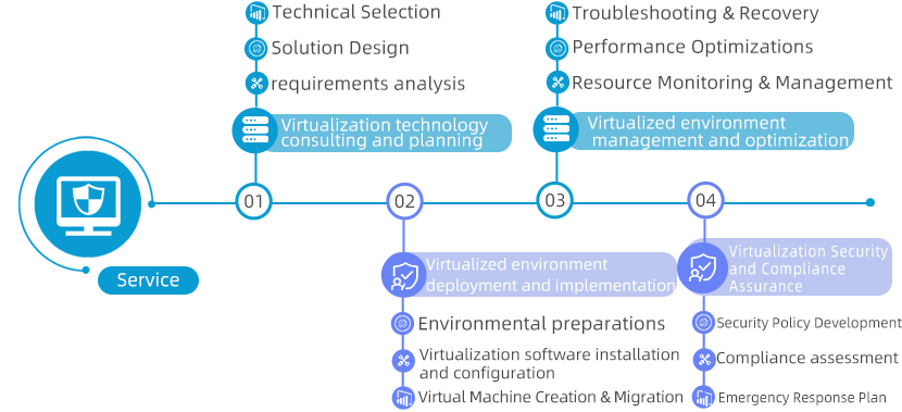 Consolidating multiple physical servers into a small number of physical servers through virtualization technology improves the utilization of hardware resources, optimizes resource allocation, reduces costs and enhances system flexibility.