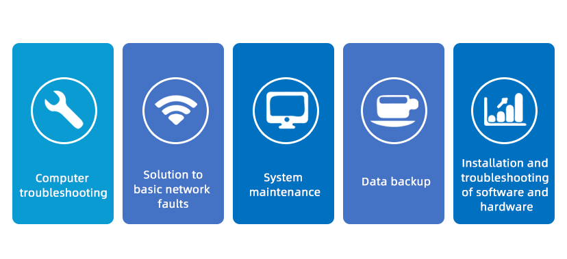 Ensure the normal operation of the IT environment and solve software and peripheral equipment failures on the computer desktop through telephone, remote, on-site, and other means.