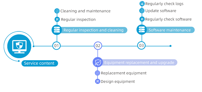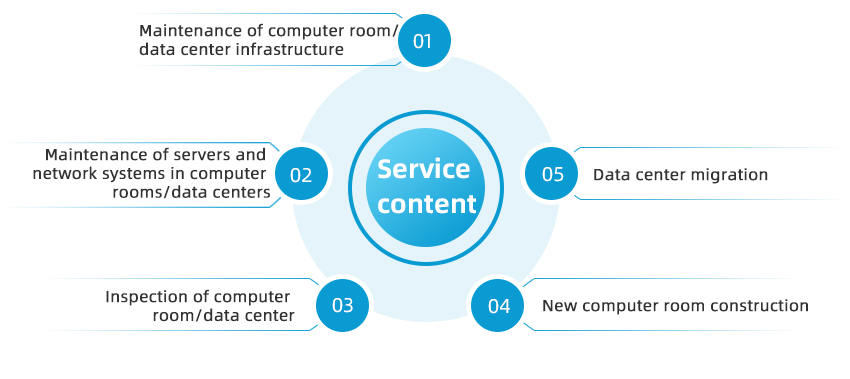 By daily operation and maintenance of the computer room, ensure the normal operation of various facilities. By maintaining and upkeep the computer room system and main equipment, improve the lifecycle and reduce the failure rate.