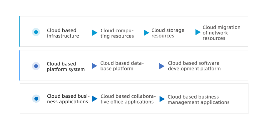 Through the network, the enterprise's infrastructure, management and business deployment to the cloud, using the network to conveniently access the computing, storage, software, data services provided by the cloud service provider, in order to improve the efficiency of resource allocation and reduce the cost of information technology construction.