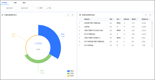 科室效益:多方面数据能够客观展示医生的工作量及绩效信息