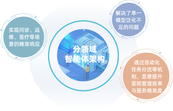 分领域智能体架构,实现问诊、运维、医疗等场景的精准响应。