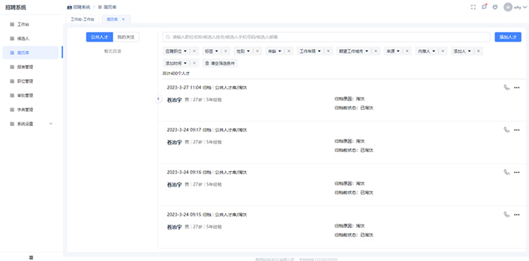 人力资源没有统一管理,易流失; 历史简历无复用机制,人才盘点难。